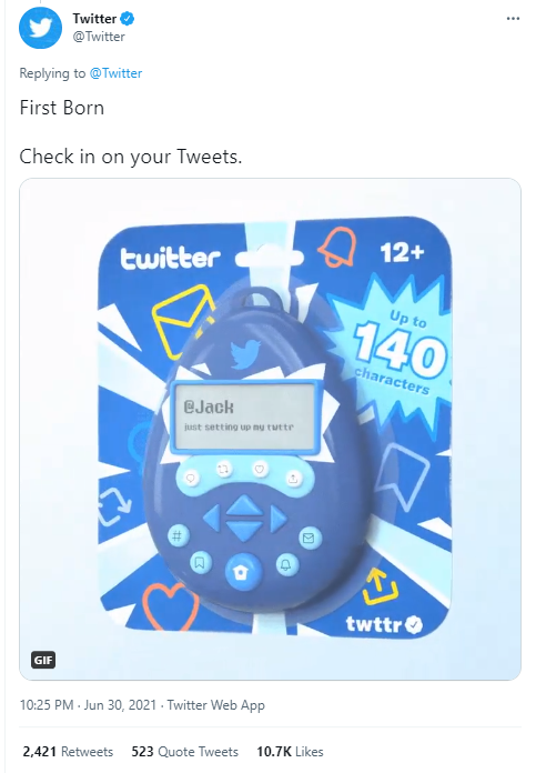 上記の画像は Twitter が初めて発行した NFT である。2週間ほど前の出来事である。画像にあるものは7種あるうちの1つで、個人的にお気に入りのやつである。ポップでかわいい。この NFT は7種×20個、全部で140個しか世界に存在しないものである。この投稿にリプライした人の中から無作為に選ばれた人が運良く NFT をゲットすることができる。私も Twitter による初めての NFT 発行であることに興奮して速攻でリプライをしたものの、得ることが出来なかった。