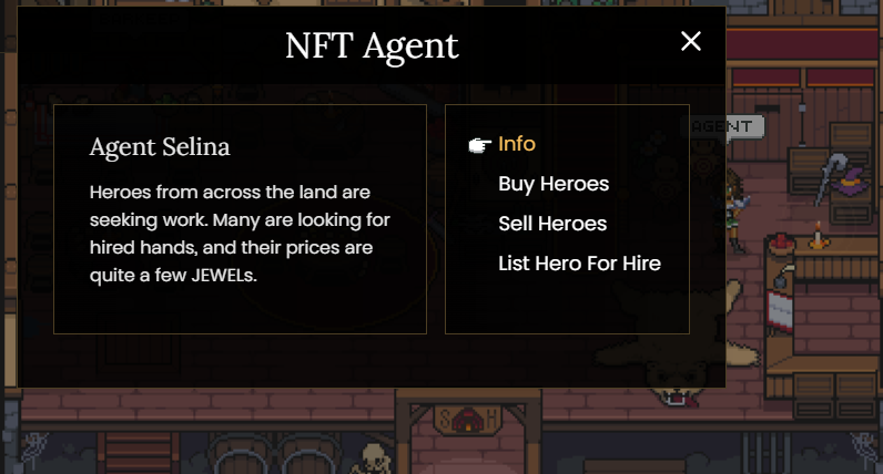 ・ヒーローの購入(Buy Heroes) ・ヒーローの売却(Sell Heroes) ・ヒーローの貸し出し(List Hero For Hire)
