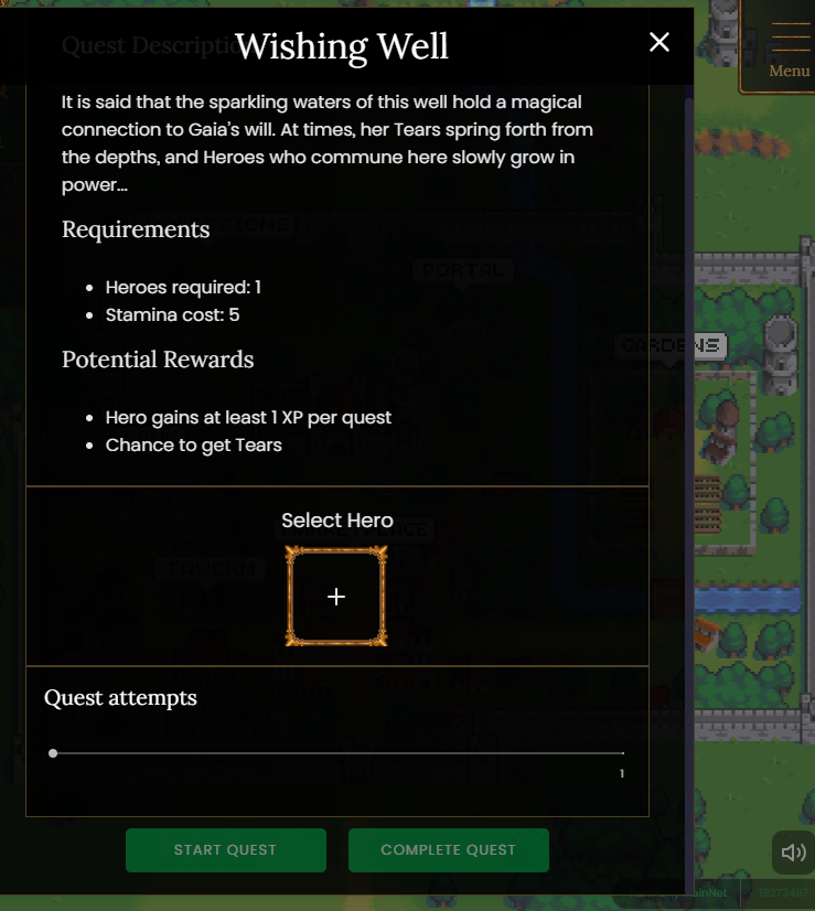 所有するヒーローを選択し、祈らせることで涙 Gaia's Tears(DFKTEARS)を入手できます。