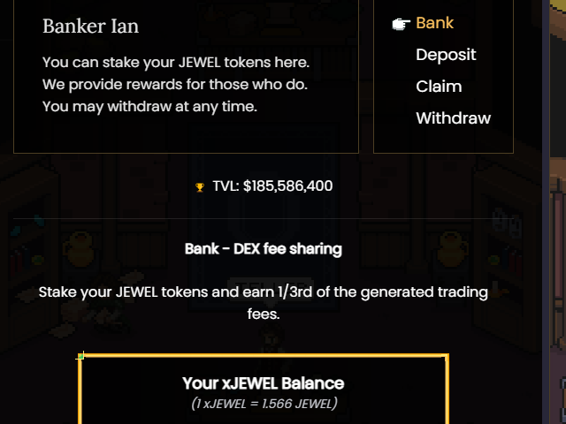 Jewelが余っている人はBANKに預けるか、ファーミングに使うのがいいかも。