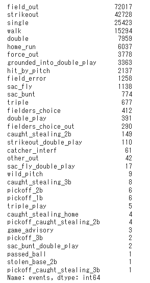 df_out = df[~df['events'].isin(['home_run', 'double', 'triple', 'single', 'hit_by_pitch'])]